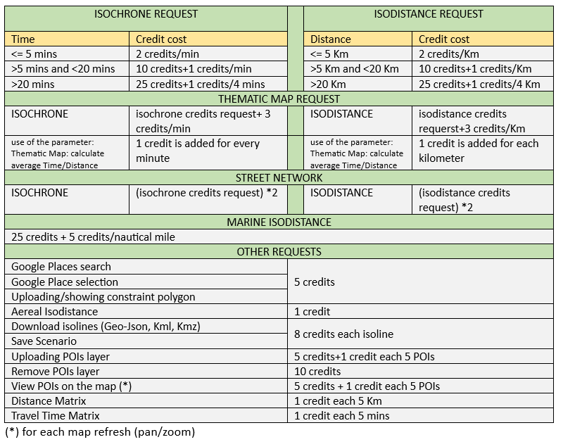 2. Freemium with registration: you can ask for every type of isolines. Your API key is limited in credits and time.